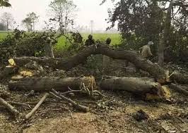 भोजपुर पहुंचने वाले रास्ते के दोनों ओर पेड़ों की कटाई शुरू कर दी गई है।