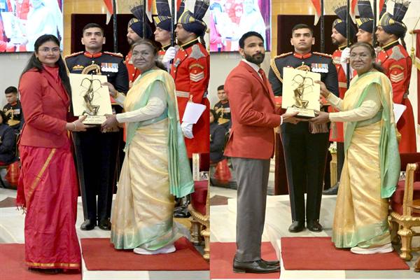 राष्ट्रपति द्रौपदी मुर्मु ने शुक्रवार को राष्ट्रपति भवन में आयोजित एक समारोह में खेल और साहसिक पुरस्कार 2024 प्रदान किए। पुरस्कारों में मेजर ध्यानचंद खेल रत्न पुरस्कार-2024; द्रोणाचार्य पुरस्कार-2024; अर्जुन पुरस्कार-2024; तेनजिंग नोर्गे राष्ट्रीय साहसिक पुरस्कार-2023; राष्ट्रीय खेल प्रोत्साहन पुरस्कार-2024 और मौलाना अबुल कलाम आज़ाद ट्रॉफी-2024 शामिल हैं।