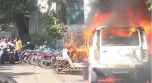 अपनी गाड़ी में ही आग लगा दी। पुलिस ने तुरंत की युवक को हिरासत में ले लिया है। घटनास्थल पर पहुंचकर फायर ब्रिगेड की टीम ने